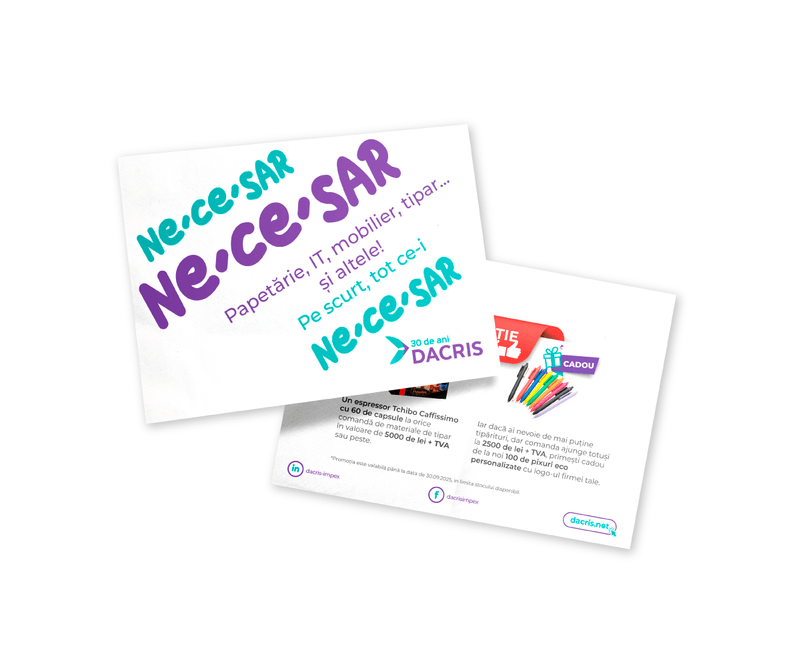 carton DCM de 150 g/mp, acest flyer oferă spațiu generos pentru conținut pe ambele fețe, păstrând un format ușor de distribuit.