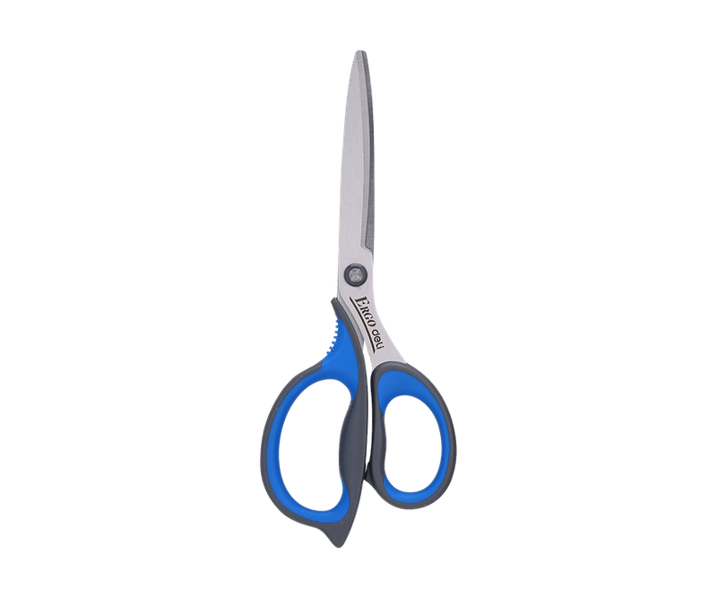 Foarfeca de birou de 21cm din otel inoxidabil cu invelis protector. Dimensiune: 250x105x15mm. Greutate: 83g. Culori asortate: galben, albastru.