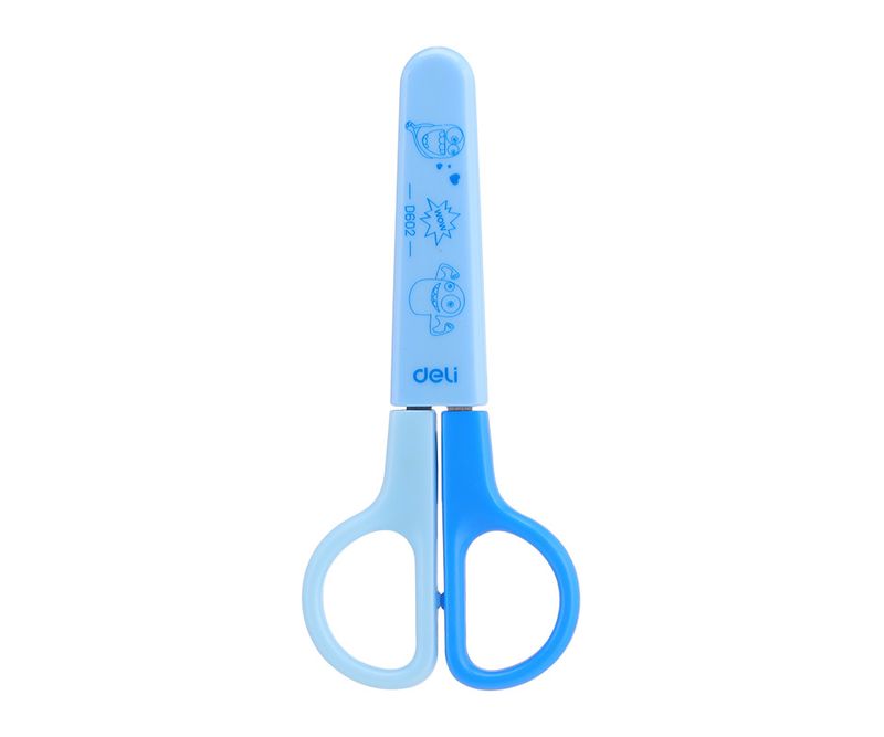 Foarfeca scolara de 12cm cu lama din otel inoxidabil. Varf rotunjit pentru utilizarea in conditii de siguranta. Echipata cu protectie pentru o utilizare sigura. Culori asortate: roz, bleu.