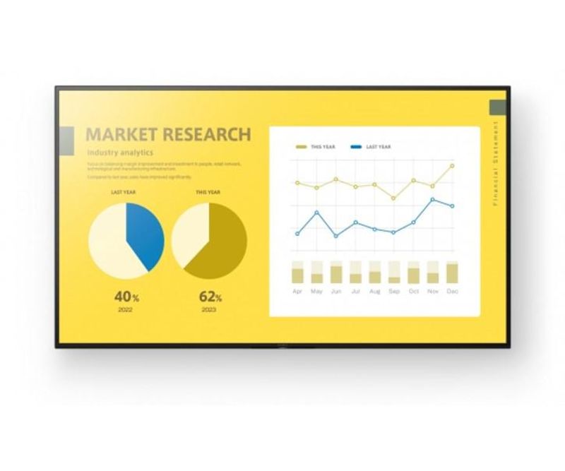 Monitor signage Sony EZ20L, 75, 350nit, 16/7, UHD, D-LED, 10ms, contrast static 1200:1, matuire 1%, stocare 16GB. Wi-Fi Direct, Apple AirPlay, Apple HomeKit, Chromecast built-in, Google Play store, Hotel Mode Menu. Conectivitate: WiFi (2.4GHz, 5GHz), BT 4.2, 1xComposit, 4xHDMI, HDCP2.3, 2xUSB, 1xLAN, 1xRS232C, Light sensor, Audio In, Digital Audio Out, Headphone Out. Landscape & Portrait, boxe 2x10W, culoare negru. Garantie 3 ani