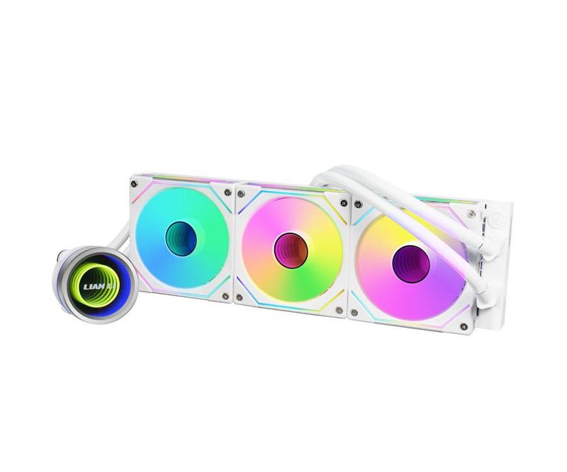 Cooler Procesor LIAN LI GALAHAD II 360 TRINITY ARGB ALB, marime radiator 360mm, 3 ventilatoare ARGB, viteza ventilatoare 3200 RPM +/- 10%, Suport AMD: AM5 AM4, suport INTEL: LGA 1200/115x/1700