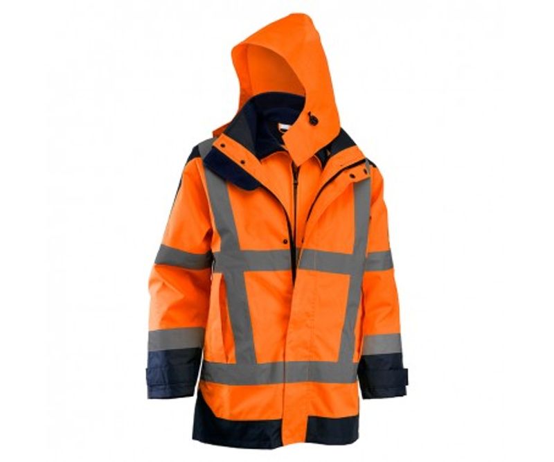 Echipamente protectia munciiImbracaminte protectieGeci protectieGeaca protectie antiploaie reflectorizanta portocaliu Rock Safety Hi-Vis Marime 3XL