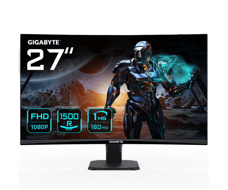 GIGABYTE GS27FC 27 FHD Curved Gaming Monitor - 1920 x 1080, 180Hz, 1, 250 cd/m², FreeSync Premium, HDR Ready, HDMI 2.0, Displayport 1.4. Display diagonal: 68.6 cm (27), Display resolution: 1920 x 1080 pixels, HD type: Full HD, Display technology: LED, Response time: 1 ms, Native aspect ratio: 16:10, Viewing angle, horizontal: 178°, Viewing angle, vertical: 178°. VESA mounting. Product colour: Black