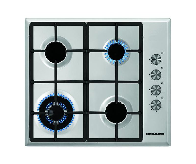 Plita incorporabila Heinner HBH-S584WI-IX, Gaz, 4 arzatoare, Wok, Gratar fonta, Control lateral, Aprindere electrica, Dispozitiv de siguranta, Duze GPL incluse, Dimenziuni (LxA): 58x51 cm, Culoare: Inox