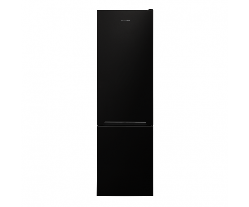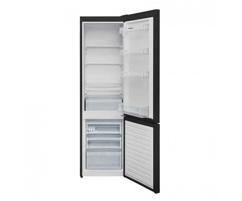 Combina frigorifica Heinner HC-V288BKE++, clasa energetica: E, sistem racire Less Frost, capacitate totala: 288L, capacitate frigider: 204L, capacitate congelator: 84L, control mecanic cu termostat ajustabil, lumina LED, 3 rafturi sticla frigider, compartiment pentru fructe si legume, 3 sertare congelator, usi reversibile, suport oua, tavita cuburi de gheata, capacitate congelare: 3.9kg/24h, Dimensiuni: 54 x 59.5 x 180 cm, culaore: Negru cu decoratiune cromata pe maner