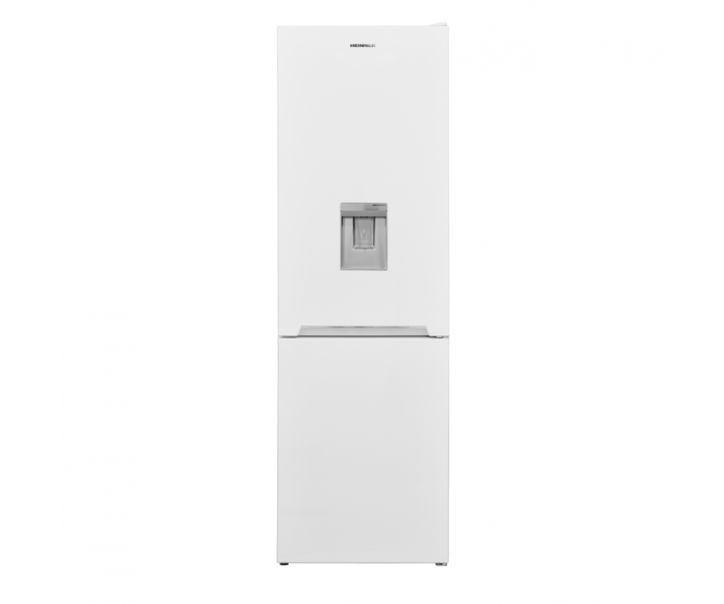 Combina frigorifica Heinner HCNF-V291WDE++, No Frost Multicooling, dozator de apa, clasa energetica E, capacitate totala: 294 L, capacitate frigider: 207 L, capacitate congelator: 87 L, control electronic cu display in interior, tehnologie Freezer Shield, lumina LED, functie ECO, alarma usa deschisa, 3 rafturi din sticla frigider, compartiment convertibil (chiller/fructe si legume), 3 sertare congelator, suport oua, tavita cuburi gheata, capacitate de congelare: 5kg/24h, dimensiuni: 59.5 x 60 x 186cm, culoare: Alb cu decoratiune cromata pe maner