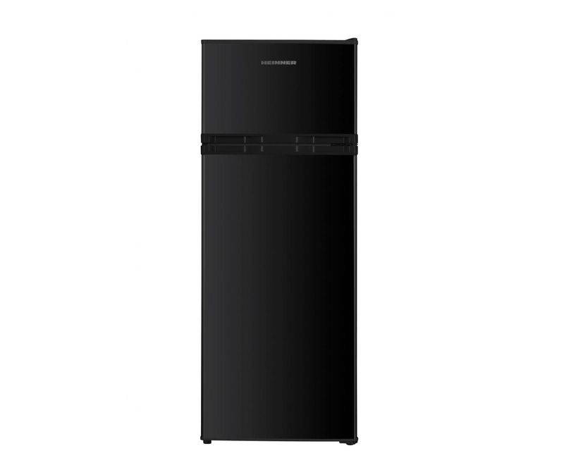 Frigider cu doua usi Heinner HF-H2206BKE++, clasa energetica: E, capacitate totala: 206L, capacitate frigider: 169L, capacitate congelator: 37L, control mecanic cu termostat ajustabil, lumina LED, 3 rafturi sticla frigider, compartiment pentru fructe si legume, usi reversibile, suport oua, capacitate congelare: 2.4kg/24h, dimensiuni (WxDxH): 54.5 x 55.5 x 143 cm, culoare: Negru