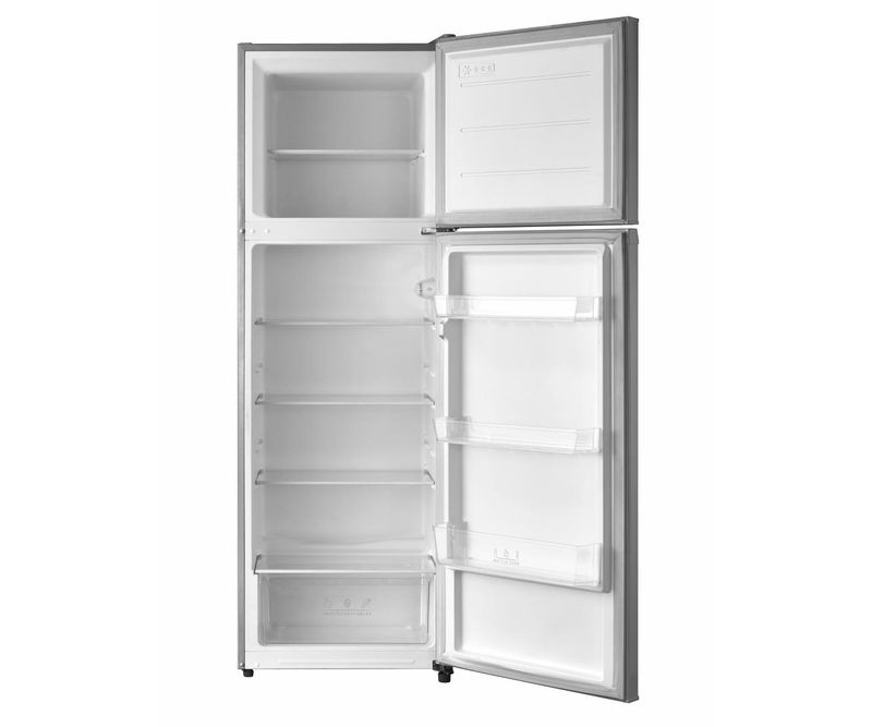 Frigider cu doua usi Heinner HF-M294SE++, clasa energetica: E, capacitate totala: 294L, capacitate frigider: 225L, capacitate congelator: 69L, control mecanic cu termostat ajustabil, lumina LED, 3 rafturi sticla frigider, compartiment pentru fructe si legume, usi reversibile, capacitate congelare: 3.2 kg/24h, dimensiuni (WxDxH): 59.5 x 55 x 176 cm, culoare: Argintiu