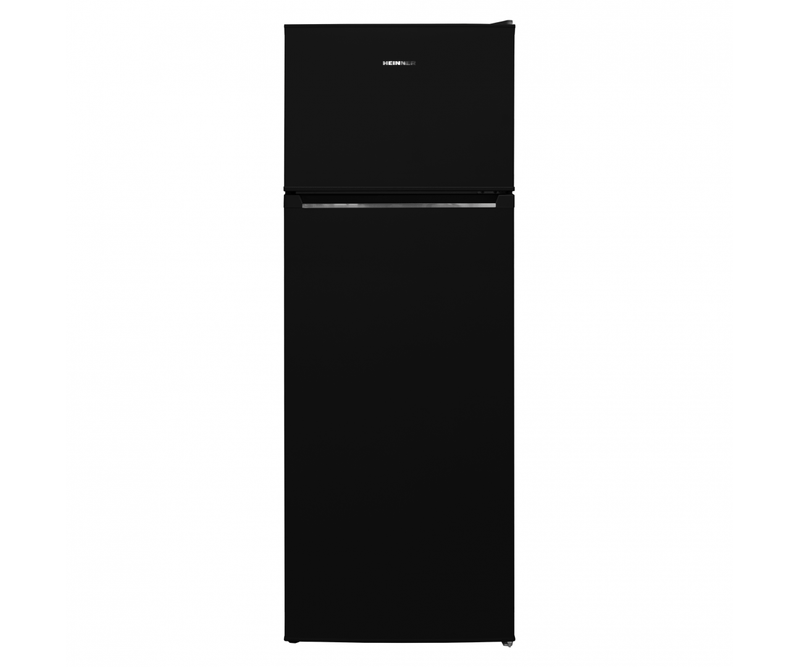 Frigider cu 2 usi Heinner HF-V212BKE++, clasa energetica: E, sistem de racire Less Frost, capacitate totala: 212L, capacitate frigider: 171L, capacitate congelator: 41L, control mecanic cu termostat reglabil, lumina LED, 3 rafturi din sticla, compartiment pentru fructe si legume, usi reversibile, suport de oua, tavita cuburi de gheata, capacitate congelare: 2.6kg/24h, dimensiuni (WxDxH): 54 x 57 x 145 cm, culoare: Negru