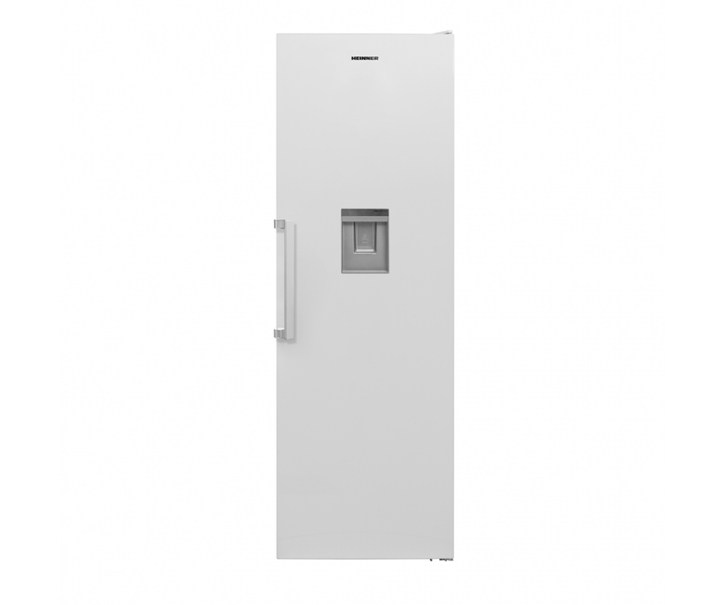Frigider Heinner HF-V401NFWDE++, Full No Frost, dozator de apa, clasa energetica: F, capacitate totala: 389L, control electronic, lumina LED, functie Super racire, 4 rafturi sticla, compartiment pentru fructe si legume cu control nivel umiditate, compartiment Chiller, suport oua, dimensiuni (WxDxH): 59.5 x 65 x 186 cm, culoare: Alb