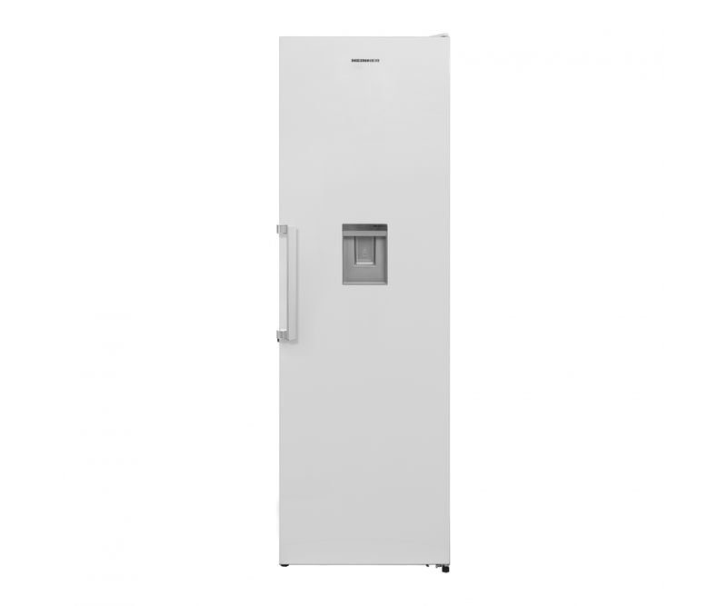 Frigider Heinner HF-V401NFWDF+, Full No frost, dozator de apa, clasa energetica: F, capacitate totala: 389L, control electronic, lumina LED, functie Super racire, 4 rafturi sticla, 1 compartiment pentru fructe si legume cu control nivel umiditate, 1 compartiment Chiller, suport oua, dimensiuni (WxDxH): 59.5 x 65 x 186 cm, culoare: Alb