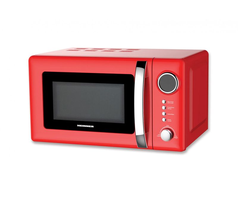 Cuptor cu microunde Heinner HMW-20GRD, Capacitate 20L, Control digital, Display LED, Putere cuptor 700W, Putere grill 800W, 5 trepte de putere, 12 programe de gatire automate, Timer, Timp maxim de gatire 60 min, Functie decongelare, Semnal sonor la finalizarea programului, Blocare acces copii, Diametru platou rotativ 245mm, Usa cu maner cromat, Dimensiuni ( LxAxI): 45.1x34.5x25.8 cm, Culoare: Rosu