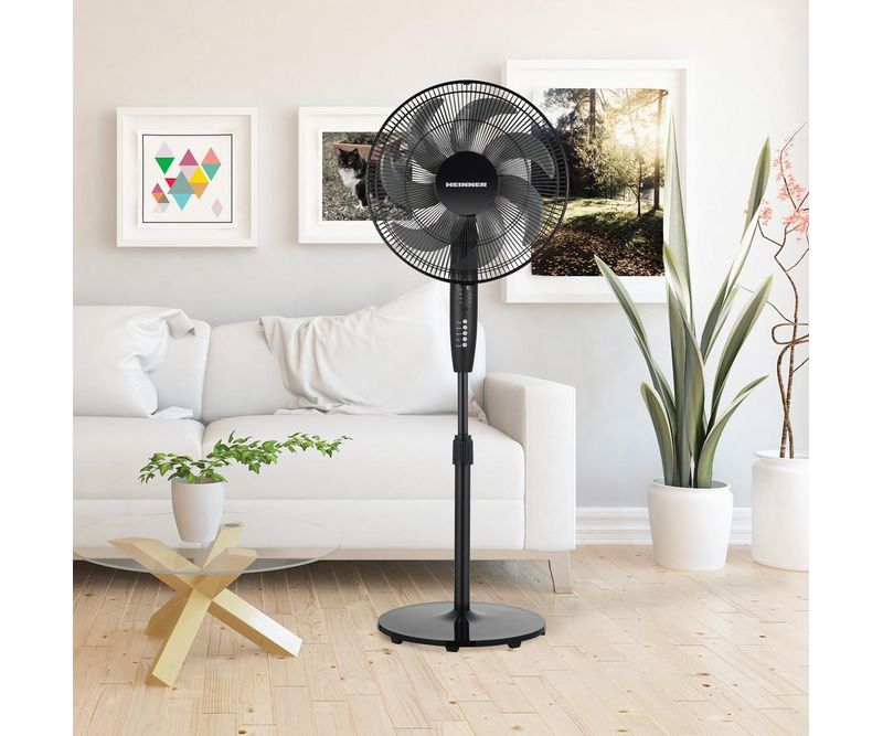 Ventilator cu picior HEINNER HSF-M750D-BK, 7 palete, timer: 7h, control digital, telecomanda, functie oscilare 85°, 3 trepte de viteza, 3 moduri: natural, noapte, normal; inaltime ajustabila, inaltime max 130 cm, putere: 50W, negru