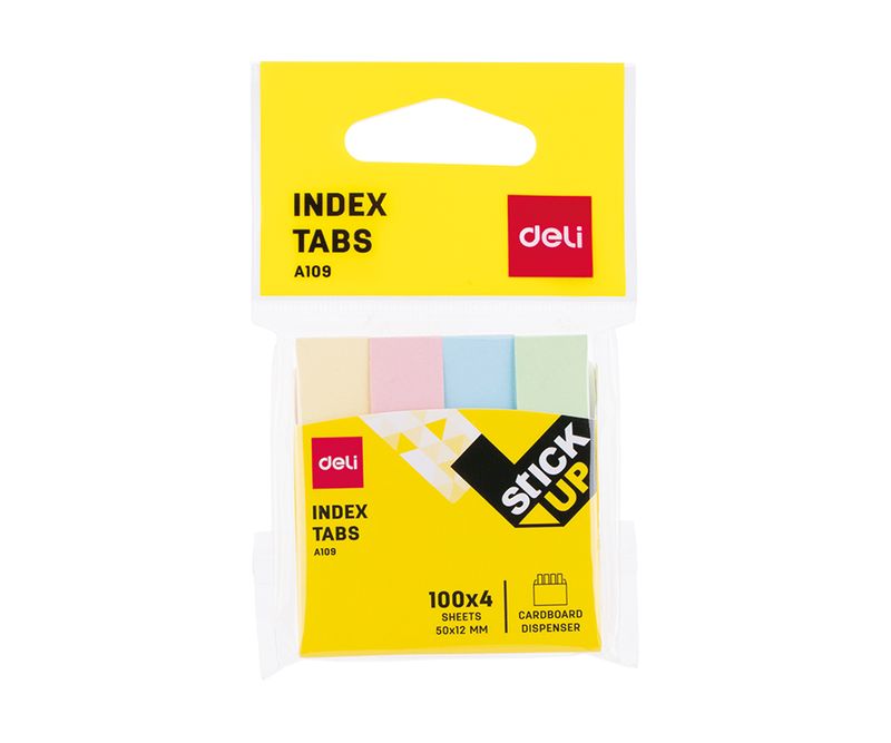 Index adeziv din hartie, 4 culori pastelate. Dimensiune: 12 x 50mm. 100 file/culoare.