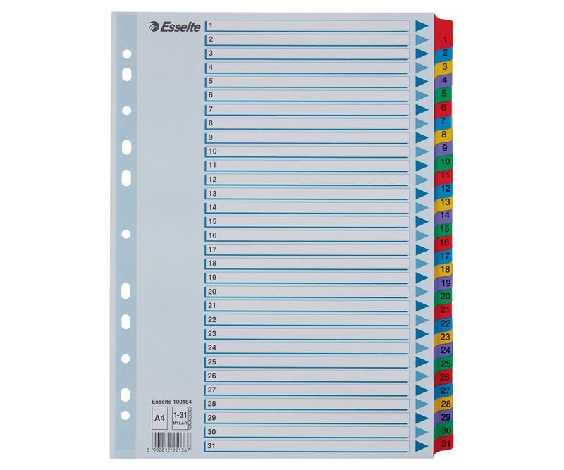 Index Esselte Mylar A4, cu taste laminate, 1-31