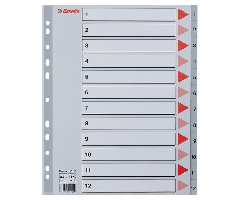 Index Esselte, plastic, reciclabil, A4 MAXI, 1-12, gri