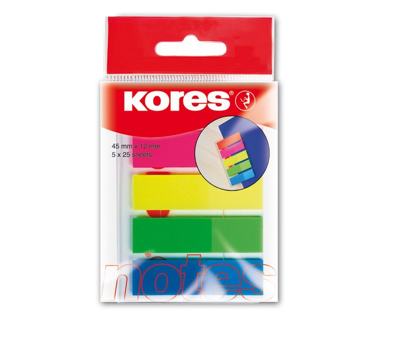 Index plastic 12 x 45 mm 5 culori x 25 file Kores