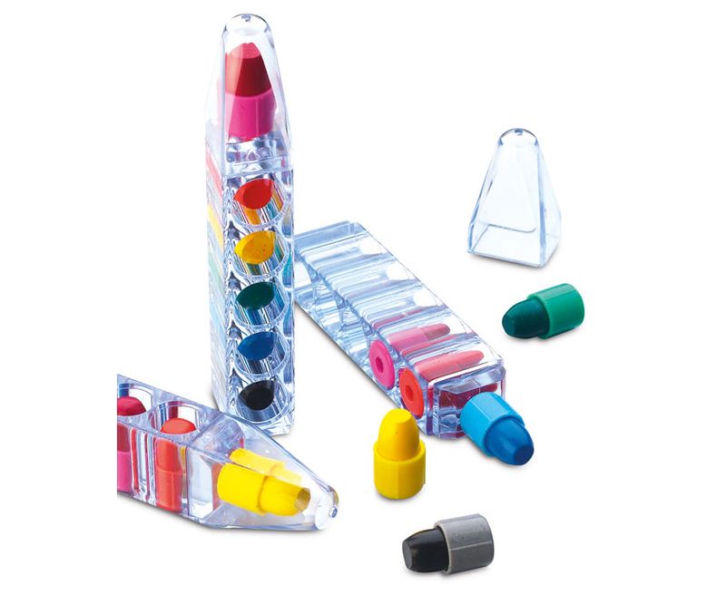 Set de 6 creioane colorate cerate in suport transparent sub forma de creion.