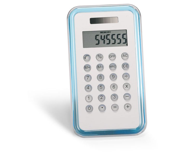 Calculator cu 8 cifre pe display, sursa de alimentare dubla si aparatoare din aluminiu. 1 baterie tip celula, inclusa.