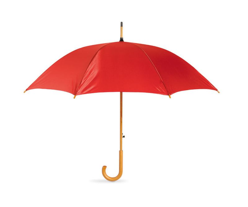 Umbrela de 23 inch cu deschidere automata, din poliester 190T, ax , varf si terminatii din lemn, spite metalice placate cu negru. Maner curbat din lemn cu finisaj natural. Inchidere manuala.