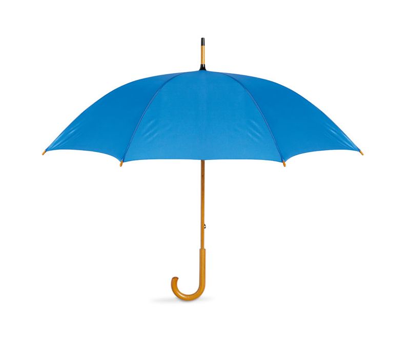 Umbrela de 23 inch cu deschidere manuala, din poliester 190T, ax , varf si terminatii din lemn, spite metalice placate cu negru. Maner curbat din lemn cu finisaj natural. Inchidere manuala.