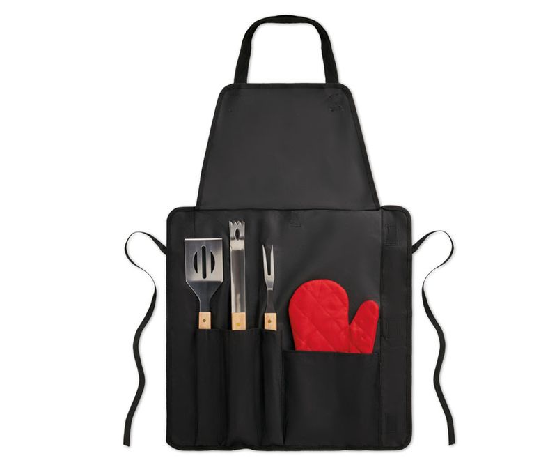 Sort din material poliester 600D, 3 ustensile si manusa pentru gratar.