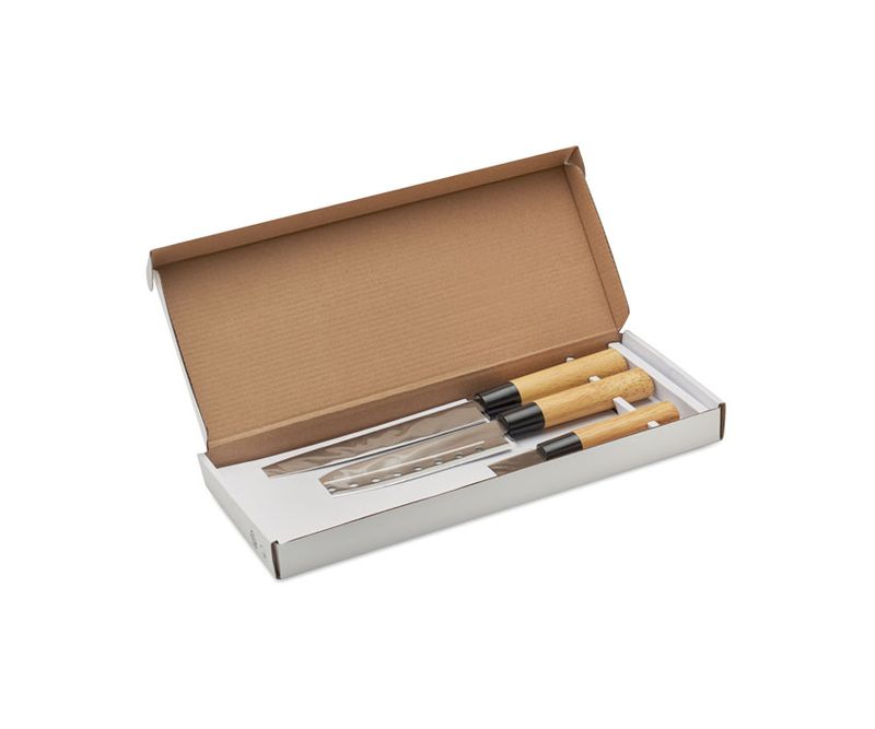 Set 3 cutite in stil japonez, cu lama din otel inoxidabil si maner din plastic PP, in cutie cadou.