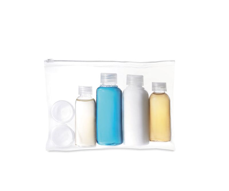 Set de 6 sticle goale pentru bagajul de cabina, in husa. (100ml, 50ml and 10ml)