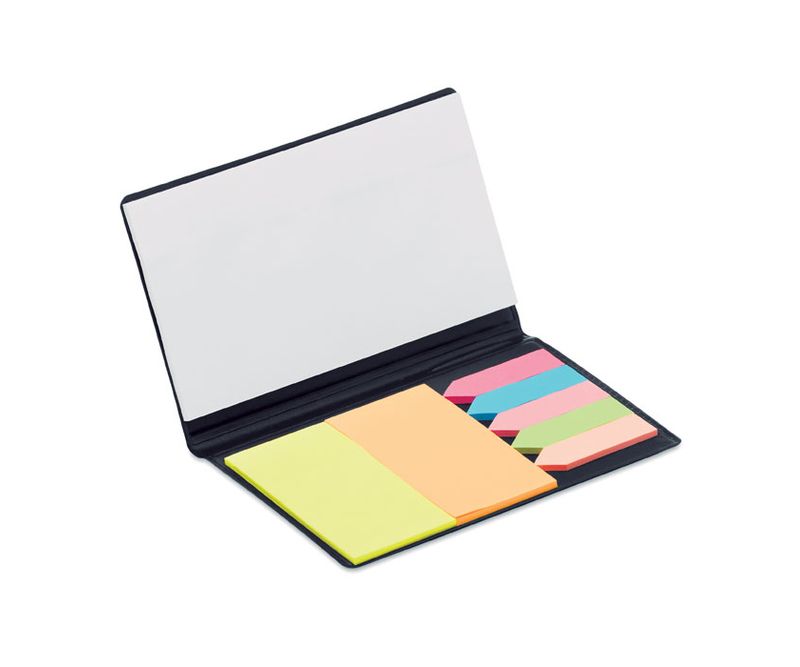Set practic de birou, include 1 set cu notite albe, 2 seturi dreptunghiulare cu notite adezive galbene si 5 markere de pagina de culori diferite.