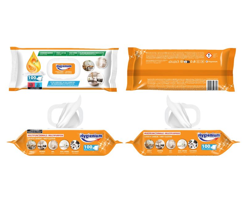 Lavete umede Hygienium cu bicarbonat și parfum de portocală – 100 buc