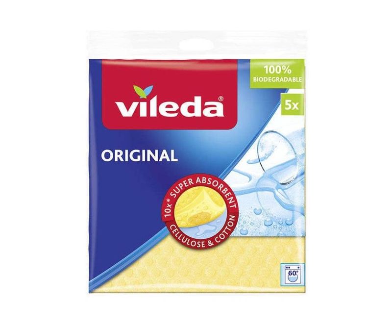 Lavetele umede Vileda au putere mare de absorbtie (pana la 100 ml de apa) Caracteristici: • Rezistente • Curata si usuca fara sa lase urme sau scame • Compozitie: 70% celuloza, 30% bumbac