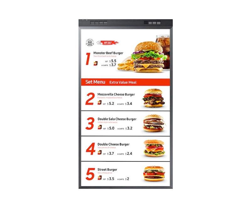 Monitor signage SAMSUNG OM55N HighBrightness, 55, 3000+1000nit, 24/7, FHD, E-LED, 6ms, contrast static 6000:1, matuire 0%, Tizen 5.0, MagicINFO S7, CPU A72*4, RAM 2.5GB, stocare 8GB. Polarized Sun Glasses Viewable in any direction, Auto Brightness Control with Ambient Brightness Sensor, temperature sensor, auto source switching & recovery. Conectivitate: WiFi, 2xHDMI2.0, HDCP2.2, 2xUSB2.0, 1xLAN, 1xRS232C, 1xIR. IP5x (Dust proof), Landscape & Portrait, rama 22.8mm even, dimensiuni 726.8x1299x69.5mm, VESA Nu (prinderea e pe laterale), greutate 42kg, consum max 500W. Garantie 3 ani