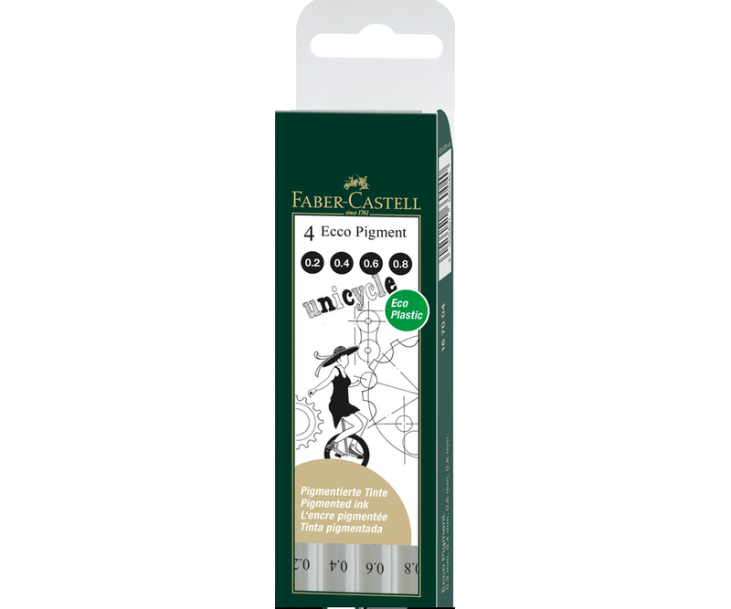 Set 4 linere Faber Castell Eco Pigment negre cu varf de dimensiuni diferite