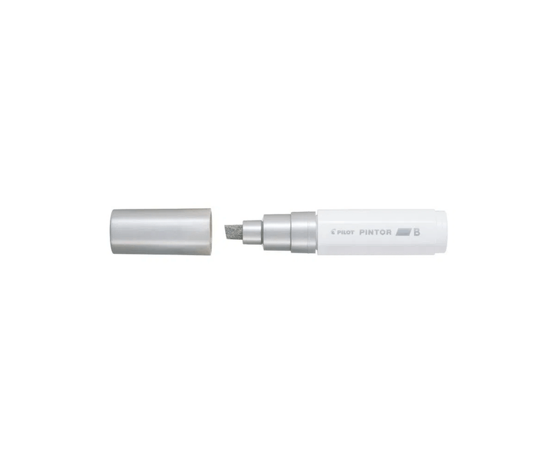 marker cu varf gros argintiu, perfect pentru suprafete mari? Alegeti markerul Pilot Pintor! Modelul propus are un varf tesit, ideal pentru o scriere de 8 mm.