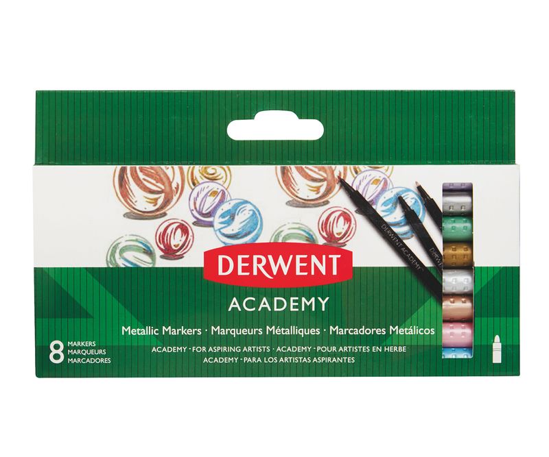 Academy Marker Markere Derwent Academy™, culori metalice, 8 buc/set