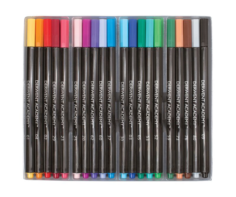 Markere în culori vibrante, pentru artiști și proiectele lor. Gama de markere Derwent Academy oferă un asortiment amplu de vârfuri, într-o varietate de culori vibrante. Gama de produse incorporează caracteristi ca ultra-subțire, subțire, pensulă, tip daltă, oferind asortimentul perfect pentru o gamă largă de stiluri de desen.
