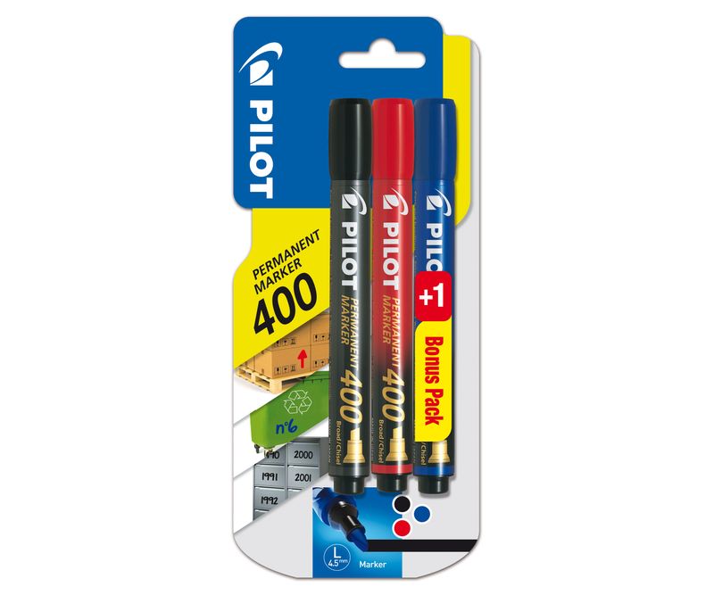 Markere permanente Pilot P400 rosu negru si albastru bonus