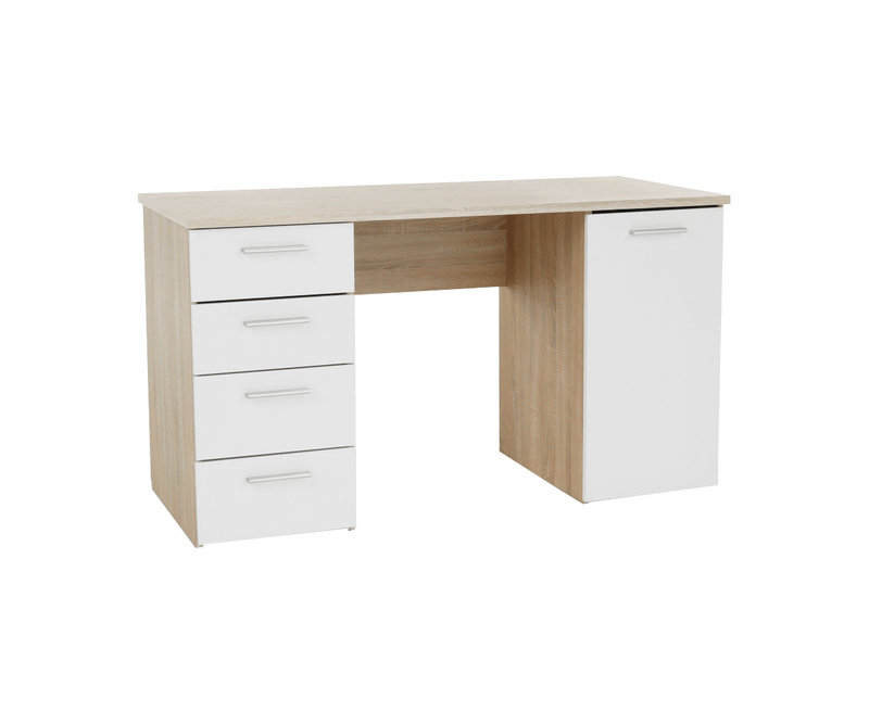 Birou cu dulap și sertare din DTD laminat stejar sonoma-alb 137x60x76.3 cm