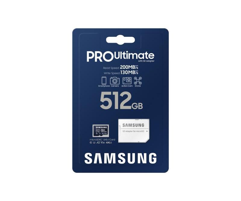 Micro Secure Digital Card Samsung Pro Ultimate, 512GB, MB-MY128SA/WW, Clasa 10, pana la 200MB/S, cu adaptor