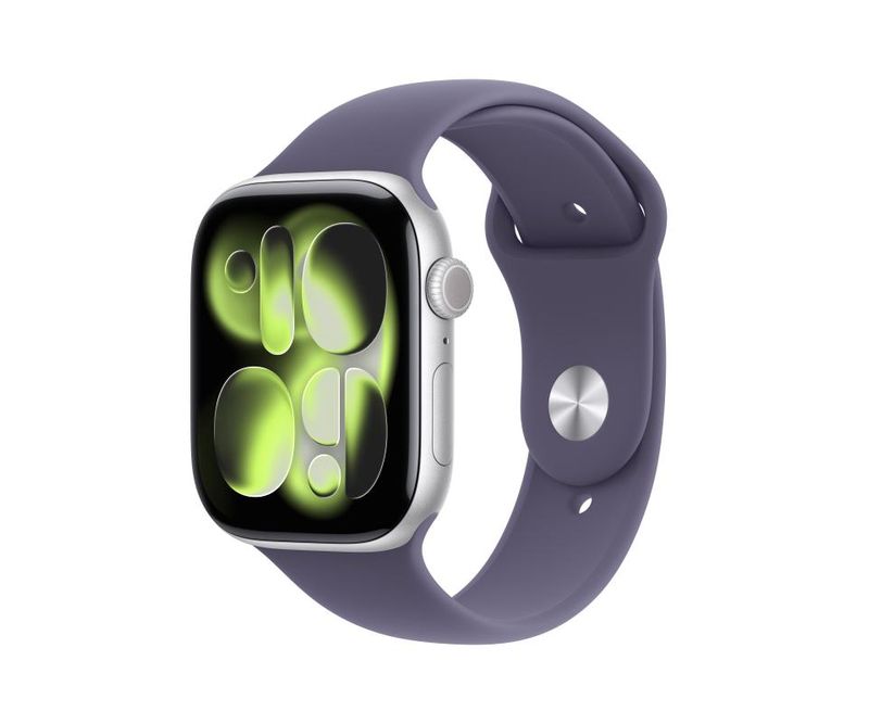Apple Watch Series 11 GPS 46mm Silver Aluminium Case with Purple Fog Sport Band - S/M
