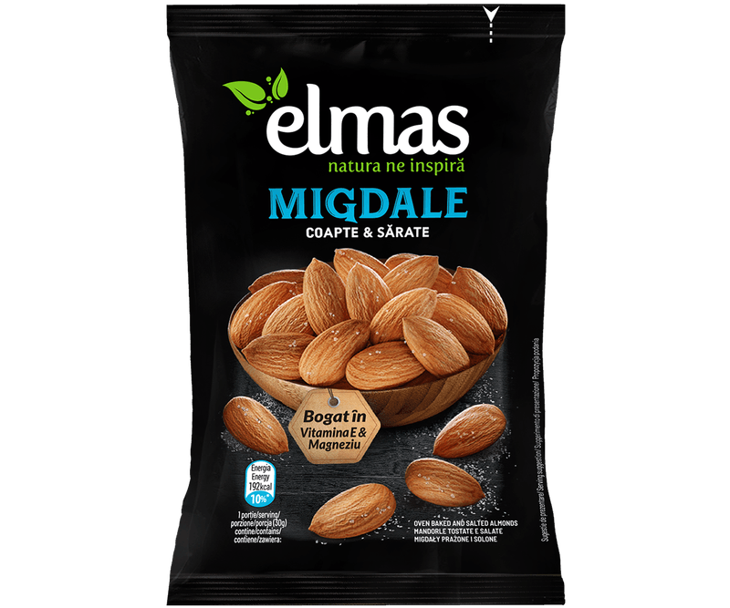 Perfecte pentru gustări între mese, la birou sau acasă, migdalele coapte sărate combină textura crocantă cu aroma intensă a nucii și un plus de savoare sărată.