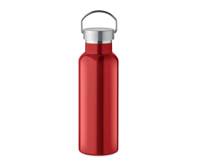 Sticla termoizolanta cu perete dublu din otel inoxidabil reciclat (90 % otel inoxidabil reciclat si 10 % otel inoxidabil) cu capac cu maner. Capacitate: 500 ml.