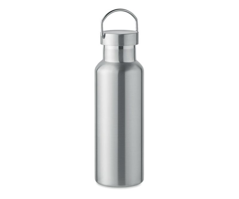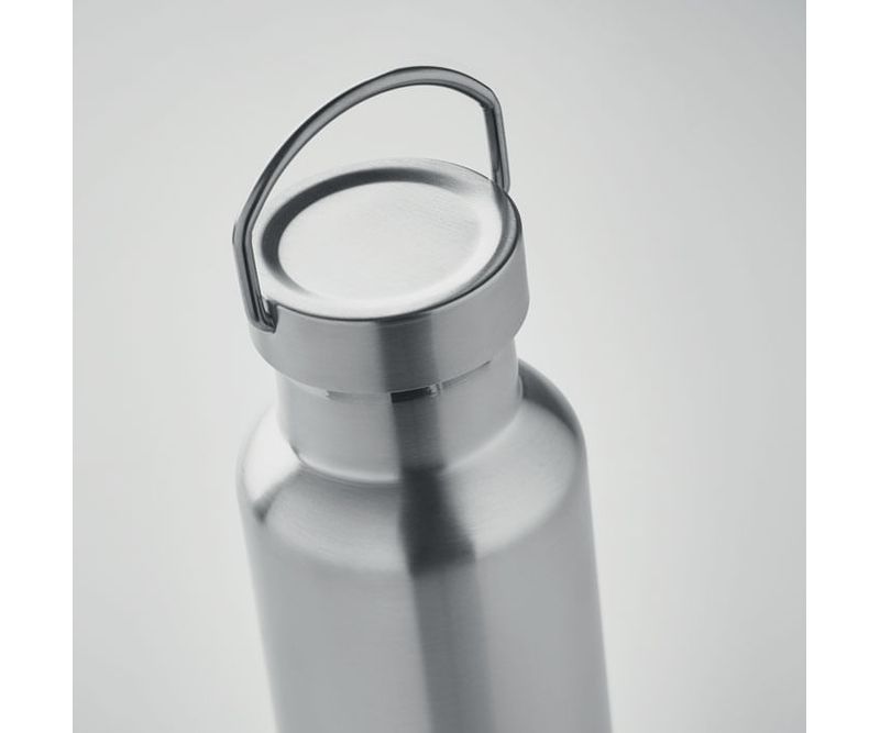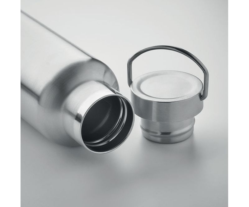 Sticla termoizolanta cu perete dublu din otel inoxidabil reciclat (90 % otel inoxidabil reciclat si 10 % otel inoxidabil) cu capac cu maner. Capacitate: 500 ml.