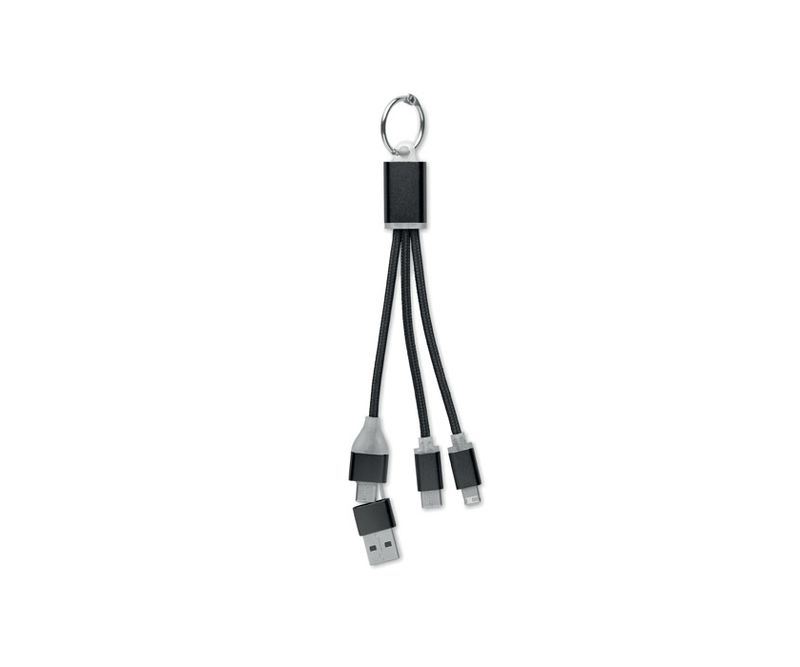 Breloc cu cablu de incarcare cu intrare: 2 in 1 tip C si tip A si micro-B (2 in 1 pin) si iesire tip C.