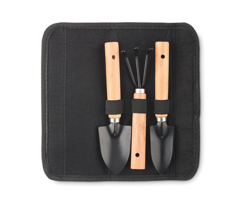 Set de 3 unelte de gradina. Grebla si 2 lopeti. Prezentat intr-o husa din pasla RPET.