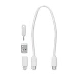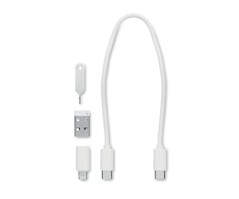 Set de cabluri si conectori 9 in 1. Cablu de transfer de date si de transmisie a energiei (480 Mbps): De la tip C la tip C. Adaptoare: tip-C la tip-A si tip-C la 2 in 1 si micro-B. Sloturi de stocare Micro si Nano SIM. Unealta pin de ejectare.