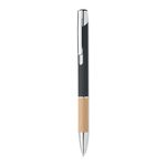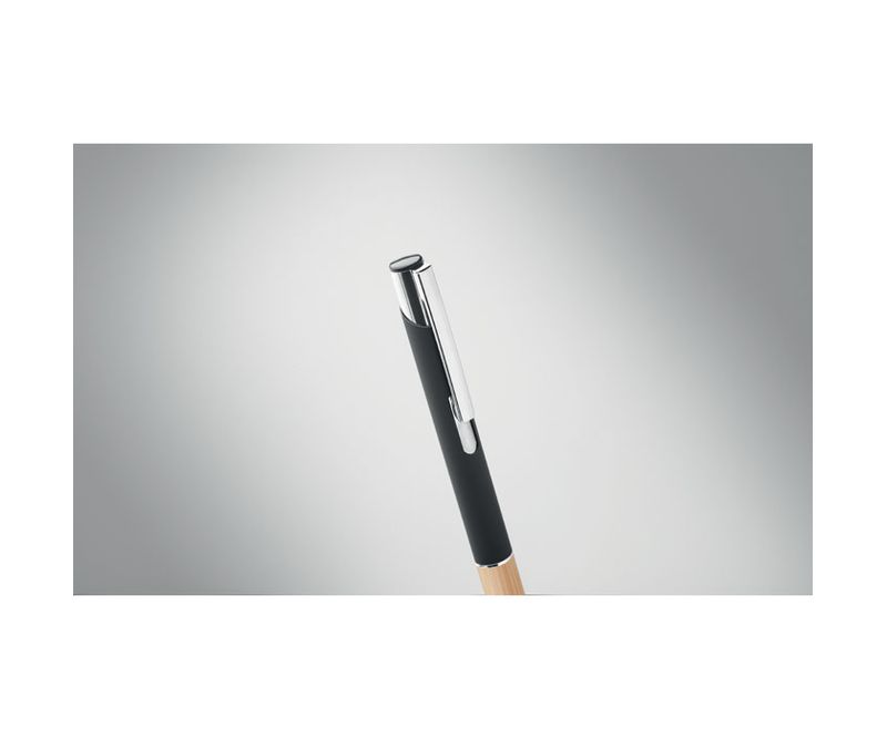 Pix cu mecanism prin apasare din aluminiu si clips din bambus. Cerneala albastra.