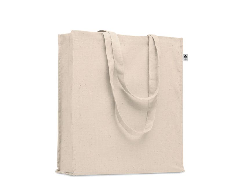 Geanta de cumparaturi din bumbac organic cu manere lungi si burduf. 220 gr/m².