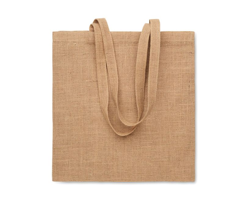 Sacosa de cumparaturi din iuta cu manere lungi. Acest produs este certificat OEKO-TEX® STANDARD 100.