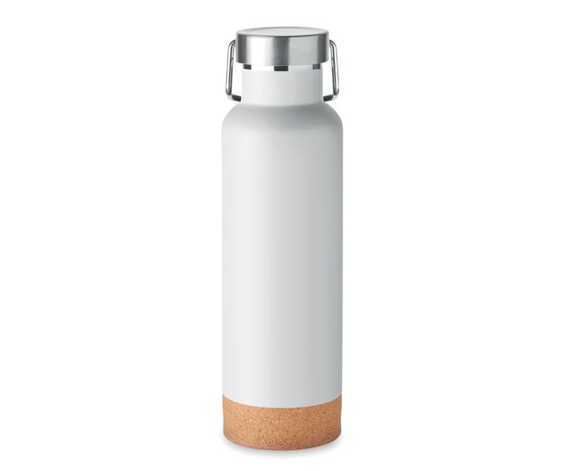 Sticla termo cu perete dublu din otel inoxidabil reciclat, cu capac cu maner si baza cu detalii din pluta. Fara scurgeri. Capacitate: 500 ml. (90% inox reciclat si 10% otel inoxidabil).